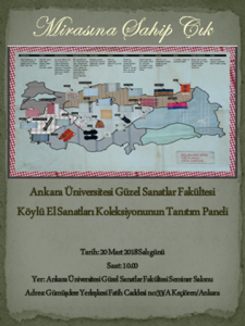 Güzel Sanatlar Fakültesine ait “Ankara Üniversitesi Güzel Sanatlar Fakültesi Köylü El Sanatları Koleksiyonunun Oluşturulması” konulu Bilimsel Araştırma Projesi kapsamında 20 Mart 2018 tarihinde tanıtım paneli düzenlenmiştir.